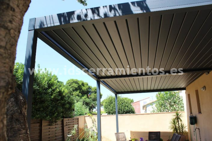 Este tipo de pérgolas cuentan con unos tejados, construidos con lamas de aluminio orientables y motorizados que se controlan de forma manual o automática. Ya sea a través de un interruptor, una manivela o incluso un mando a distancia, las lamas pueden girarse y dejarse en la posición que más se desee.