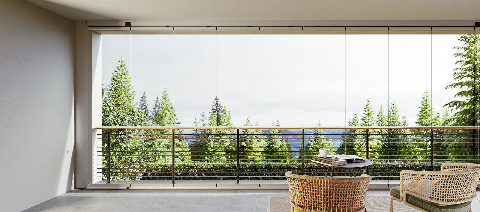 Gracias a las hojas de vidrio movibles individualmente, los sistemas corredizos giratorios de SUNFLEX se pueden abrir en frentes enteros. Gracias al poco espacio que ocupan una vez plegados, se consigue una transición particularmente amplia entre el interior y el exterior. Además, los sistemas corredizos giratorios de SUNFLEX destacan por sus numerosas variantes y geometrías posibles. El contraste entre el vidrio y la pared resulta especialmente atractivo. En consecuencia, los sistemas corredizos giratorios son ideales para el acristalamiento flexible de balcones o como acristalamiento de logias.